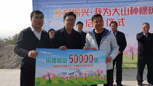 据悉,“乡村振兴·我为大山种棵树”为系列活动,民建重庆市直属工委与民建重庆市铜梁区总支将用5年时间在铜梁区各乡镇捐赠、栽种100万株树苗?;疃比眨蚴阏蚓柙?万株树苗。