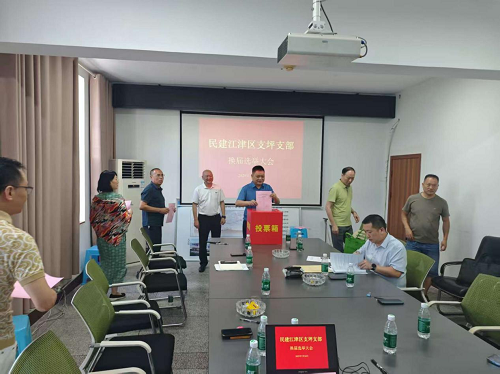 7 月 26 日,民建江津区支坪支部召开换届选举大会。民建江津区委会专职副主委敬原出席会议并主持选举,会议严格遵循换届程序,圆满完成各项议程。