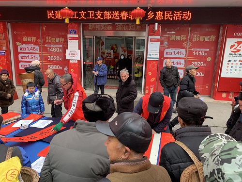 为传承与弘扬中华优秀传统文化,营造喜迎新春的热闹气氛,近日,趁着群众们忙着采购年货的赶集日,民建黔江文卫支部来到了阿蓬江镇乡场上,开展了“灵蛇迎春”送春联下乡惠民活动,火红的对联一一呈现,浓浓的年味扑面而来。