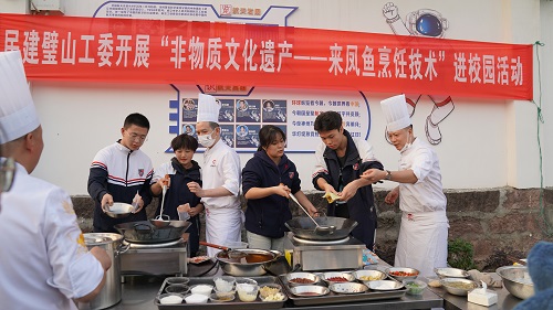 民建璧山工委三支部主委、来凤中学财务部主任黄光海作为活动发起人之一,为活动顺利开展提供了服务。他表示,作为活动承办双方的牵线人,发挥自身优势,搭建民建璧山工委与来凤中学合作平台,促进非物质文化遗产技艺的推广与传承,义不容辞。活动通过餐桌上一条平凡的“鱼”讲述出一段不平凡的故事,给同学们带来了别样的体验,得到同学们的肯定和认同。本次活动虽然圆满结束,但我国非物质文化遗产传承工作还任重而道远。作为民建会员,今后要继续发挥作用,积极做好我国非物质文化遗产的传承与?;ぁ?/p>