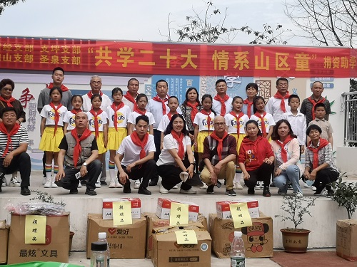 6月9日,民建江津区委会专职副主委敬原与财经、支坪、鼎山、圣泉支部会员会友20余人前往东胜小学,开展“共学二十大·情系山区童”捐资助学活动。
