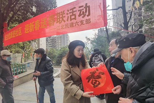 为营造喜庆、文明、祥和的春节氛围,1月18日,民建江北区六支部、北国风光社区和北国风光文学社联合举行“我们的中国梦——文化进万家”2023年迎新春送春联活动在北国风光小区开展。民建江北区委会专职副主委汤敏莅临现场指导活动开展。