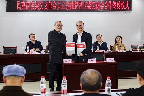 3月24日下午,民建涪陵区崇义支部会员之家授牌暨与崇义商会合作签约仪式在涪陵区崇义街道办事处举行。民建涪陵区委会主委陈圣玲出席会议并讲话,崇义街道党工委书记郑义柳、崇义街道党工委委员、宣传统战委员杜莉,崇义商会会长李平,副会长吴杰、郎成伟、许杰应邀参会指导;民建涪陵区委会副主委贺付琴、专职副主委黄鲁,四级调研员刘家学,民建涪陵区委委员张健、李健、陈俊豪及42名会员参加本次活动。民建涪陵区委委员、崇义支部主委杜银泉主持会议。
