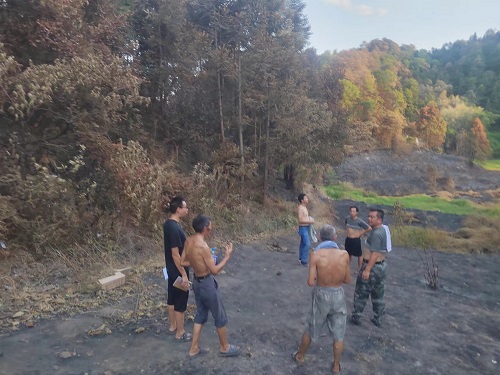 冲锋在前、争分夺秒,参与火情处置。因连晴高温,支坪镇真武场社区楠林山上于8月16日夜间出现山火。陈飞接到电话马上起床,第一时间奔赴现场,参与火灾处置。第二天他全天在山上驻守巡查和处置余火,第三天他24小时值守在楠林山上,防止复燃。19日清早,陈飞查看楠林的山火平息,经请示得到许可后,主动赶赴出现火灾的仁龙村,白天指挥群众撤离,夜间通宵值守。随着火势的蔓延和工作需要,20日上午陈飞被调整抽调到仁龙村西线,调度协调支援西线的鼎山、西湖、白沙、贾嗣、永兴、先锋的人员和物资等,并参与现场救援?;鹗瓶刂坪?,21日起参与防复燃协调联系工作。23日晚,他陪同镇领导从东线沿着输水管路步行穿越受灾林区至陈家岩水厂,查看火灾后陈家岩水厂输水管路的受损情况,为灾后重建做准备。