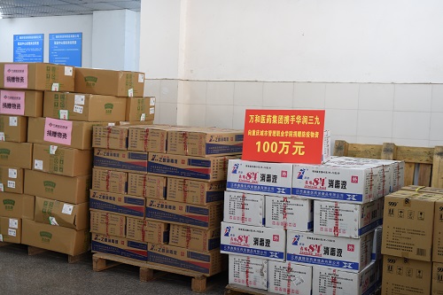 3月13日下午,万和医药集团筹集百余万元的防疫物资,包括医用外科口罩近百万只、感冒灵颗粒上千盒、乙醇消毒液上千瓶、84消毒液上千瓶、蛋白粉数百盒,捐赠至重庆城市管理职业学院,专项用于学??挂咔榉揽毓ぷ鳌Qг旱澄榧侨尾ù硌=邮芫柙?,他衷心感谢民建爱心企业家唐先伟,感谢万和医药集团等爱心企业,并表示捐赠不仅是物质上的支持,更是精神上的鼓舞,他们的善行义举为学校战胜疫情增添了力量和信心。