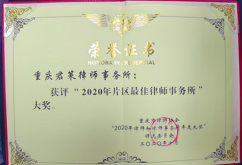 10月16日下午,一则喜报在民建江津区委微信群里出现,这个热闹非凡的场景在民建江津区委微信群里上演着!原来是从重庆市律师协会律师和律师事务所年度大奖2020年颁奖典礼传来喜讯,江津民建会员企业——重庆君策律师事务所在江津区、綦江区、涪陵区、璧山区等13个区组成的主城新区众多律师事务所中脱颖而出,荣获“2020年片区最佳律师事务所”大奖。
