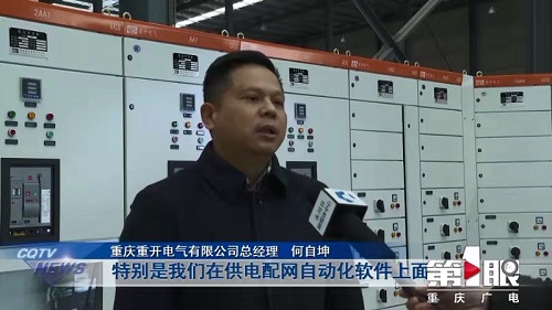 近日,重庆卫视“新闻联播”报道了一则“永川加快转型升级,推动绿色发展”的新闻,永川区第十八届人大代表、民建永川区委会委员、重庆重开电气有限公司总经理何自坤代表永川低碳环保企业接受采访,他说道:“重开电气对供电配网自动化软件进一步升级改造,为满足用户‘碳达峰’和‘碳中和’的目标,提供了定制化软件系统”。